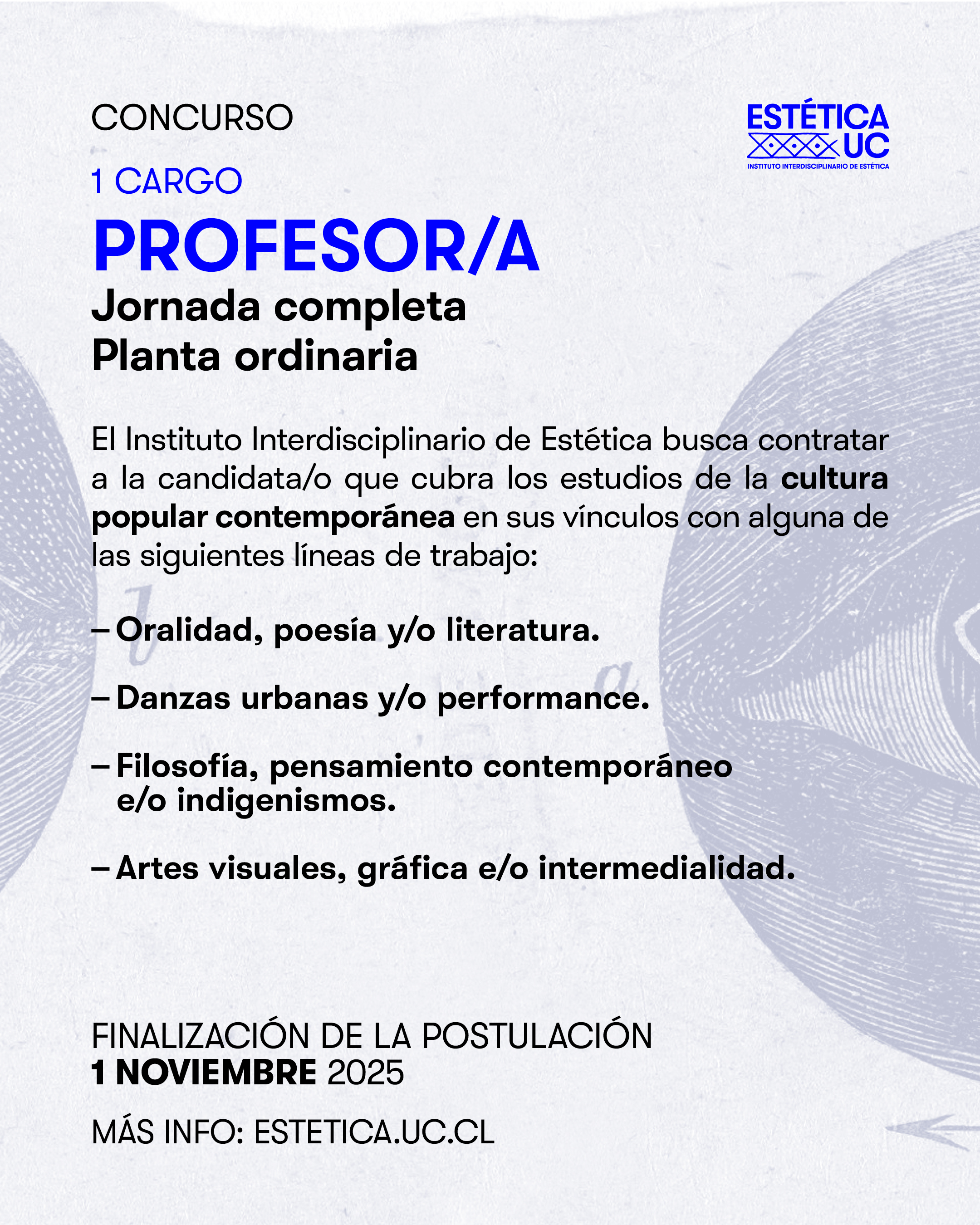 El Instituto Interdisciplinario de Estética de la Pontifica Universidad Católica de Chile llama a Concurso Internacional para llenar 1 cargo de Profesor/a de jornada completa en planta ordinaria con afiliación primaria en el Instituto Interdisciplinario de Estética y secundaria en…